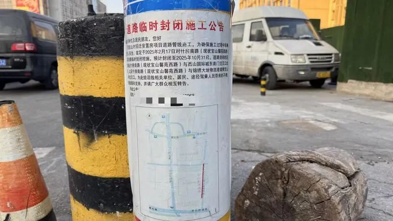 近日,家住海淀区四季青镇西山国际城的王先生向北京12345市民服务热线反映,约一年前,小区东侧的宝山馨苑西路被封,公告显示施工时间截止到去年(2025年)10月31日。如今已经超期,道路没有建设,围挡也没有拆除。设置围挡的原因是什么?道路何时能恢复通行呢?